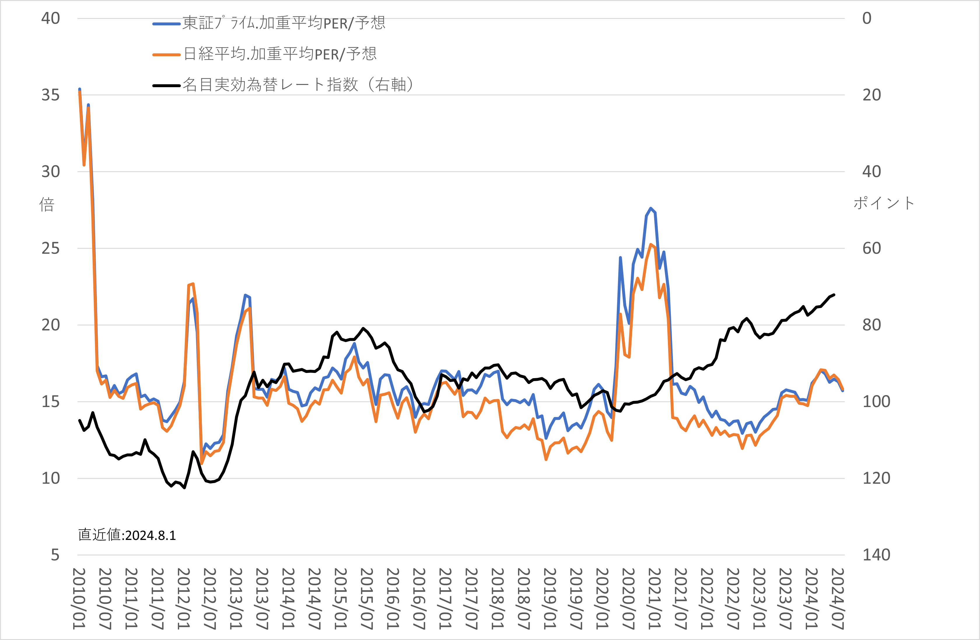円安効果によるかさ上げであっても、EPS増加には変わりないため、PERでみる限り株価は割高とはいえないでしょう。