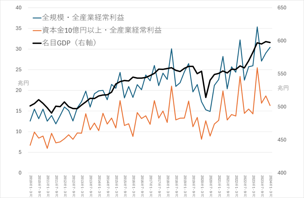 名目GDPと国内企業利益は連動