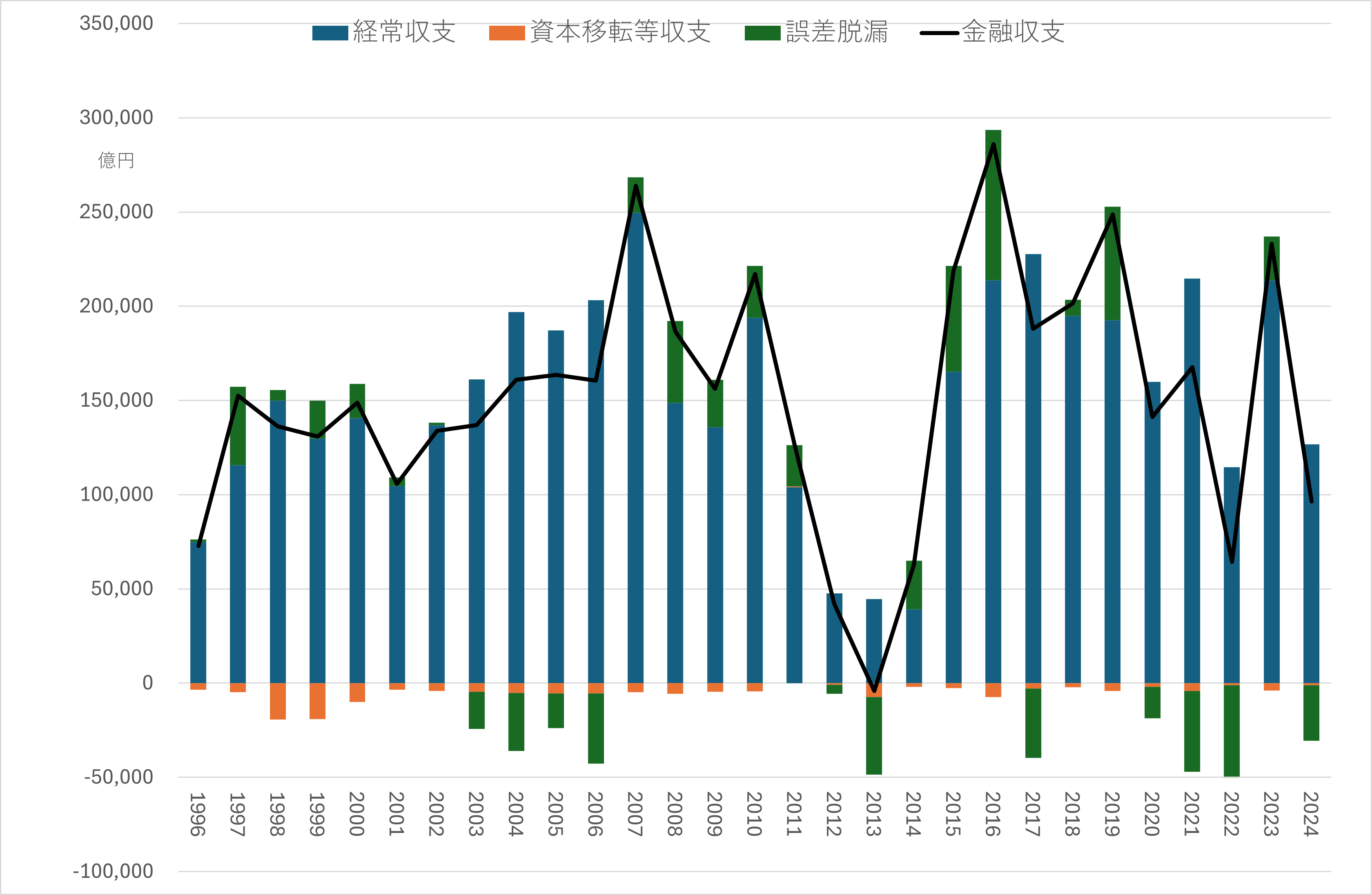 経常収支+資本移転収支+誤差脱漏=金融収支