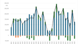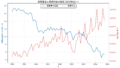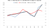 このグラフからは、「大幅な円安(オレンジ線の低下)が進行しているにもかかわらず、輸出数量(青線)がかつてほど伸びていない」 という、近年の日本経済の構造変化(Jカーブ効果の希薄化や、生産拠点の海外移転など)を示唆する重要なトレンドが観察できます。